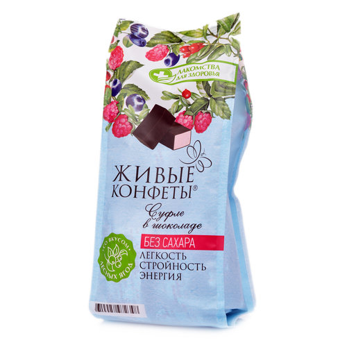Конфеты глазированные горьким шоколадом: "Суфле" со вкусом лесных ягод. Без сахара. Содержит подсластитель. При чрезмерном употреблении может оказывать слабительное действие