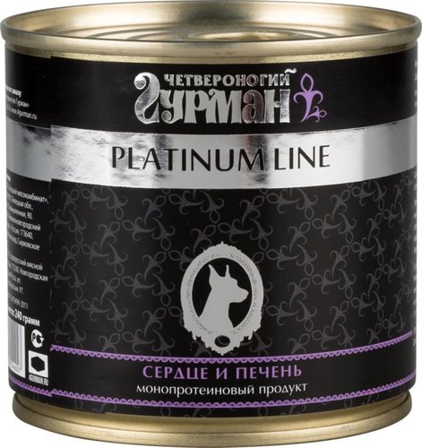 Срок годности: 1095 дней. Корм консервированный для собак ЧЕТВЕРОНОГИЙ ГУРМАН Platinum line Сердце и печень для собак – это деликатесное мясное лакомство супер-премиум-класса. В каждой баночке содержатся цельные или крупно нарезанные субпродукты, которые так любят животные. Корм полностью натуральный: в его составе нет искусственных красителей, ароматизаторов, усилителей вкуса и ГМО. Подходит для собак всех пород, а также для питомцев, которым показана строгая или монобелковая диета.
