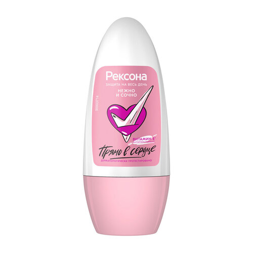Дезодорант антиперспирант женский Рексона Нежно и Сочно - это средство для личной гигиены, которое предоставляет коже подмышек мягкий оптимальный уход. Освежающий дезодорант роликовый женский обеспечивает надежную защиту от запаха пота на 48 часов'. Дезодорант женский шариковый с приятным фруктово - мускусным ароматом - это то, что нужно для вашего комфорта! В основе действия средства - мягкая формула для защиты от пота и запаха на 48 часов'. Дезик содержит витамин E*, оказывает увлажняющий эффект на кожу подмышек. Шариковый антиперспирант женский имеет игривый фруктово-цитрусовый аромат. Верхние ноты запаха представлены дикими спелыми ягодами: малиной и лесной клубникой, которые гармонично сочетаются с нотками яркого апельсина и розового грейпфрута. В сердце аромата – аккорды красного яблока, ландыша, пиона и фиалки. Особую привлекательность аромату придают нотки драгоценного кашемира, ванили и сливочного мускуса. Рексона дезодорант женский - это невидимая защита от запаха пота на 48 часов', средство не оставляет следов на одежде''. Дезодорант от запаха пота способствует восстановлению кожи подмышек. Дезодорант Рексона женский не содержит этиловый спирт, не имеет в составе парабенов и красителей. Антиперспирант женский шариковый идеально подойдет как для женщин, так и для девочек-подростков с 14 лет. Шариковый дезодорант женский Рексона Нежно и Сочно дерматологически протестирован. Дезодорант шариковый - это практичный подарок для девушки или девочки-подростка. Антиперспирант шариковый Нежно и Сочно можно купить дочери, сестре и подруге. Объем средства - 50 мл. Формат - роликовый дезодорант женский. Рексона - это эффективная защита, привлекательная упаковка, доступная цена и разнообразие ароматов. Продукция бренда Рексона никогда не подведет! '48 ч защиты - клинически подтверждено Юнилевер, *масло семян подсолнечника - природный источник витамина Е, ''при соблюдении инструкции по применению. Проведите роликом 2-3 раза вверх и вниз по чистой и сухой коже подмышек.