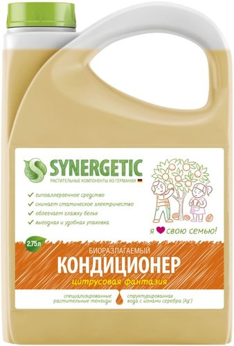 Биоразлагаемый кондиционер-ополаскиватель для белья Synergetic "Цитрусовая фантазия".Кондиционер-ополаскиватель - профессиональное средство, бережно ухаживающее за всеми типами ткани, придающее мягкость и нежный аромат вещам после стирки. Облегчает глажение, обладает антистатическим эффектом. Гипоаллергенен. Полностью вымывается, не остается на одежде. Применим для всех типов стиральных машин и ручной стирки. Биоразлагаемые компоненты не вредят микрофлоре септических установок.