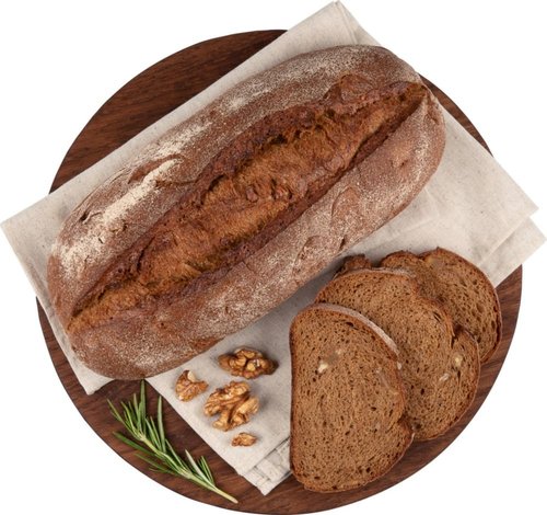 Нежный мякиш этого пшенично-ржаного хлеба дополняют хрустящие кусочки грецкого ореха. Хлеб обладает насыщенным вкусом и аппетитным ароматом с оттенками солода и пряностей. Для приготовления теста по классической рецептуре используется мука только высшего сорта. Свежий хлеб выпекается каждое утро – никакой заморозки! Хлеб с грецким орехом особенно хорошо сочетается с воздушными паштетами и пикантными выдержанными сырами.