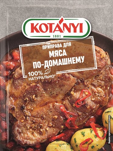 Приправа для мяса. Сочетание ароматного майорана и тмина с кайенским и черным перцем в "Приправе для мяса по-домашнему" KOTÁNYI придаст мясу приятную пряную нотку. Применение: для приготовления мяса на гриле, сковороде, для тушеного мяса, медальонов из свинины и шницеля.