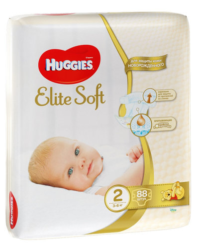 Подгузники Huggies Elite Soft 2, 3-6кг, 88шт.Супер-мягкий слой «Текстор» со специальными подушечками обеспечивает невероятную мягкость продукту. Новый слой SoftAbsorb позволяет быстро впитывать жидкий стул и влагу за секунды. Содержат натуральный 100%-ный хлопок, пористые материалы позволяют коже дышать. Индикатор влаги подскажет маме когда нужно поменять подгузник. Внутренний кармашек разработан специально для дополнительной защиты от протекания. Застёжки легко застёгиваются в любом месте подгузника. Мягкий суперэластичный поясок для великолепного прилегания. Яркие и узнаваемые герои Дисней.