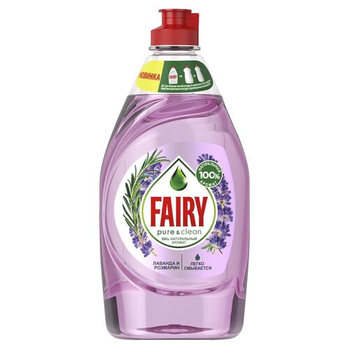 ГлавнаяБытовая химияДля мытья посудыСредство для мытья посуды Fairy Pure & Clean Лаванда и Розмарин, 450 мл Средство для мытья посуды Fairy Pure & Clean Лаванда и Розмарин, 450 мл