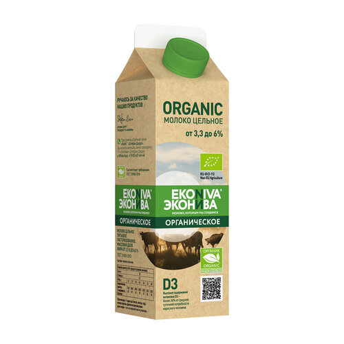 Цельное пастеризованное молоко Эконива organic 3,3-6% с высоким содержанием фосфора и витамина d3 создано по стандартам органического производства. Также данный продукт является источником полезных элементов: йода, витаминов в2 и в12. Молоко Эконива organic соответствует требованиям к органическим продуктам, реализуемым на территории ЕС и РФ. Об этом говорят знаки euro leaf и organic. Выбирая органическую продукцию, человек заботится не только о своем здоровье, но и о биоразнообразии, состоянии почвы и качестве содержания животных. А значит о благополучии планеты в целом. Российский сертификат соответствия, европейский сертификат соответствия.