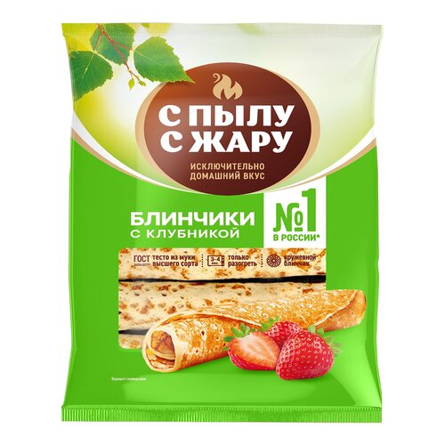 Блинчики "С пылу с жару" с клубникой. 6 шт. свежезамороженные. Готовый продукт. Только разогреть.