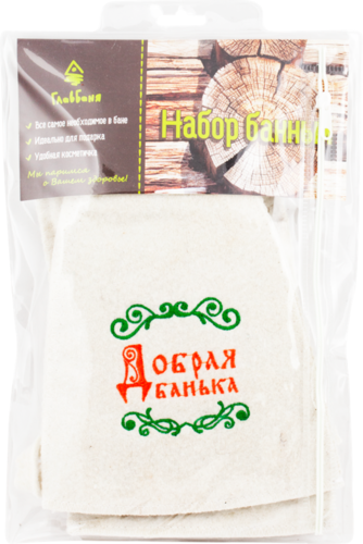 Добрая банька,(шапка,рукавица),войлок бел.. Размеры: 25x370x250мм