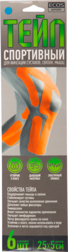 Тейп Спортивный Ecos.по 25см,ширина 5см Арт. 5190 (китай)