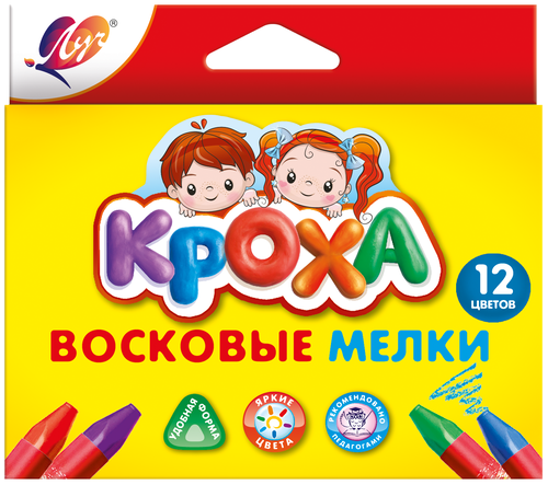 Восковые мелки изготовлены на основе полимерных восков. Утолщённая трёхгранная форма карандаша особенно удобна для самых маленьких художников.