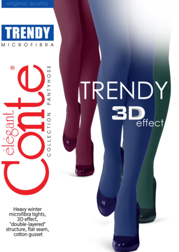 Плотные теплые колготки TRENDY в ультрамодных цветах выполнены по технологии двухслойного вязания из нитей микрофибры и LYCRA. Они идеально облегают ноги благодаря эффекту 3D. LYCRA®: прочные, устойчивые к зацепкам и облегающие словно "вторая кожа" - именно такими свойствами обладают колготки, в состав которых включено волокно LYCRA