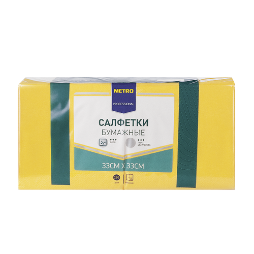 ГлавнаяВсе для кухниОдноразовая посуда, салфеткиСалфетки бумажные жёлтые Размер 33*33см, 250 штук ТМ Metro Professional (Метро Профешионал) Салфетки бумажные жёлтые Размер 33*33см, 250 штук ТМ Metro Professional (Метро Профешионал)