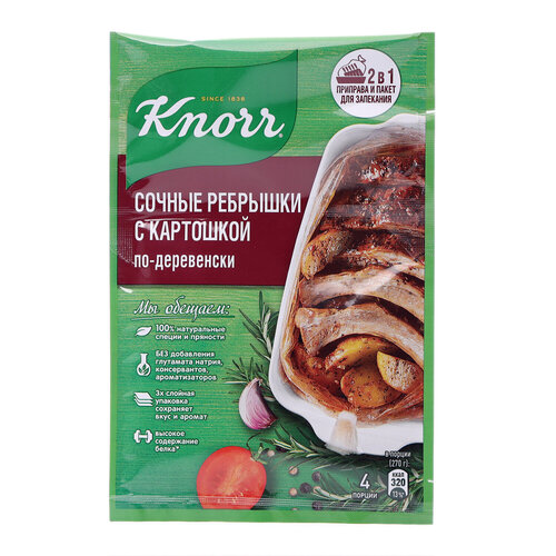 Ароматные и пряные "Сочные ребрышки с картошкой по-деревенски" от Knorr. Особое сочетание чеснока, горчицы, томатов и тмина сделают ребрышки по-деревенски вкусными, а картошечку - душистой, рассыпчатой и аппетитно золотистой. Пакет для запекания сделает ваше блюдо сочным и ароматным! Чтобы приготовить незабываемый обед, вы должны по-настоящему любить готовить. Любить процесс тщательного отбора продуктов, мягкое пламя конфорки, нагревающее продукты. Любить людей, для которых вы готовите и которые чувствуют вашу заботу в каждом кусочке пищи, приготовленной вами. Чтобы еда получалась вкусной, вы должны любить все, что относится к процессу. И мы любим. Мы любим готовить точно так же, как и вы. Все начинается с качественных ингредиентов. Вкус - дело непростое. Бывают просто вкусные блюда, а бывают кулинарные шедевры, от каждого кусочка которых текут слюнки. Чтобы добиться именно такого эффекта, мы ни на минуту не прекращаем искать нужные нюансы вкуса и аромата, стремясь дать вам и вашей семье только лучшее. Лучшего вкуса можно добиться только с помощью первоклассных ингредиентов. Мы прикладываем максимум усилий, чтобы отбирать только сочные и ароматные овощи. Тысячи ферм по всему миру, где с любовью выращиваются овощи и зелень специально для Knorr, дают нам только лучшее. Иногда мы специально отправляемся на поиски редких ингредиентов для множества наших рецептов в другие страны - например, за сладкими копчеными перчиками чили эспелет из Страны Басков в Пиренеях.