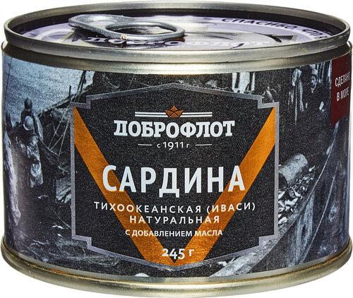 ГлавнаяКонсервыРыбные консервыСардина тихоокеанская натуральная с добавлением масла ТМ Доброфлот Сардина тихоокеанская натуральная с добавлением масла ТМ Доброфлот