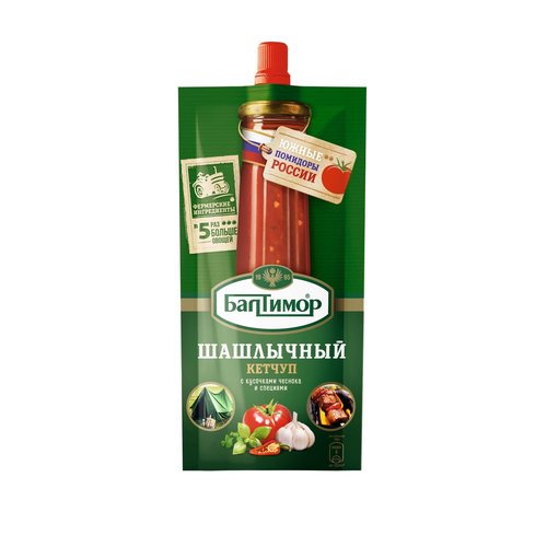 Массовая доля растворимых сухих веществ не менее 18%. Сейчас вряд ли можно найти человека в России, который бы не знал бренд Балтимор. Кетчуп с этим названием произвел целую революцию в истории отечественных соусов. Кусочки отборных овощей и зелень делают его особенно густым и вкусным, а широкое разнообразие вкусов позволяет подобрать кетчуп к любому блюду и на любой вкус! Попробуйте знаменитый кетчуп Шашлычный с кусочками ароматного чеснока. Этот настоящий русский кетчуп добавит свою изюминку в качестве пряной нотки чеснока в любое блюдо! Никогда не получится спутать традиционный вкус кетчупа Шашлычный. Рецепт достойного кетчупа раскроет для вас как новый вкус самого блюда, с которым вы его пробуете, так и свою утонченность вкуса! Еще один элемент вкусного ужина — кетчуп, который сегодня найдется в холодильнике каждой семьи. Сегодня без него трудно представить обед или ужин. Правильный российский соус должен быть как сама еда, к которой его добавляют: понятный, густой и насыщенный. Уже более 20-ти лет Балтимор придерживается традиции русской домашней кухни: с ним все и вкуснее, и сытнее, и разнообразнее. Одним из самых заметных преимуществ продукции Балтимор - это густая консистенция. В отличие от других брендов, Балтимор напоминает продукты домашнего приготовления: тщательно отобранные ингредиенты, густота, крупные кусочки настоящих овощей и специй - это тщательно выверенный рецепт идеального вкуса. Попробуйте легендарный кетчуп Балтимор Шашлычный!