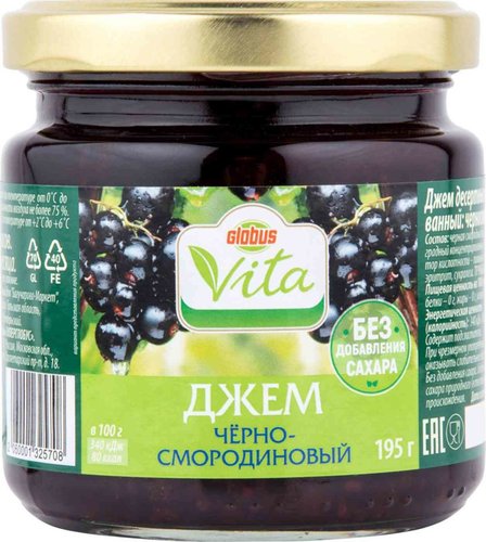 ГлавнаяКонсервыВаренье, джемыДжем чёрно-смородиновый без сахара ТМ Глобус вита Джем чёрно-смородиновый без сахара ТМ Глобус вита