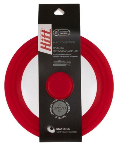 Мультиразмерная крышка Hitt с силиконовым ободом изготовлена из прочного закаленного стекла. Имеет удобную не нагревающуюся ручку с силиконовым покрытием, предотвращающим выскальзывание. Подходит к любой сковороде или кастрюле диаметром 18, 20, 22 см. Изготовлена из стекла и силикона — современных, гигиеничных и экологичных материалов. Допускается использовать в духовке до 200 градусов по Цельсию, легко моется, не впитывает запахи. Силиконовые части крышки надежно защищают стекло при падении. Очень современная, стильная, удобная и практичная крышка незаменима на кухне любой хозяйки. Внимание! Товар представлен в ассортименте, без возможности выбора.