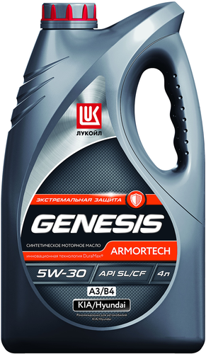 Синтетическое всесезонное моторное масло Genesis Armortech НК Sae 5W30 рекомендовано для применения в бензиновых и дизельных двигателях (без фильтров сажевых частиц) автомобилей Kia, Hyundai и других автопроизводителей, требующих применения масел уровня API SL, ACEA A3/B3, A3/B4 и вязкости 5W-30. Может также применяться в двигателях, требующих применения масел с допусками VW 502 00/505 00, MB 229. 5 или Renault 0700/0710. Масло обладает повышенным показателем HTHS (High Temperature High Shear), что в сочетании с пониженной вязкостью обеспечивает высокую топливную экономию и гарантирует превосходную защиту от износа. ЛУКОЙЛ Genesis Armortech НК Sae 5W30 производится с применением передовой технологии DuraMax. Одобрено: API SL. Соответствует требованиям: ACEA A3/B3, A3/B4 API CF. Подходит для эксплуатации двигателя при повышенных нагрузках – режим «старт – стоп». Масло обладает превосходными антиокислительными, антикоррозионными и низкотемпературными свойствами. ЛУКОЙЛ Genesis Armortech НК Sae 5W30 обеспечивает максимальную защиту двигателя от износа в жестких условиях эксплуатации. Выпускается в пластиковой канистре объемом 4л.