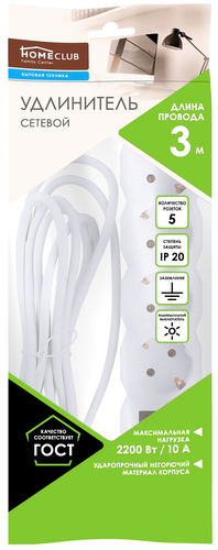 Удлинитель сетевой с заземлением выключатель ТМ Homeclub (Хоумклаб)