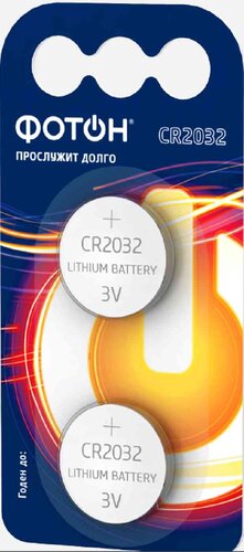 Элемент питания литий-марганцевый CR2032/5004LC BP2, 2 шт. ТМ Фотон