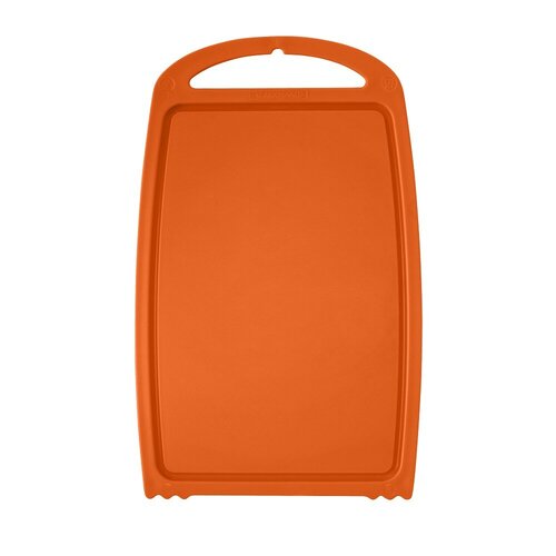 Небольшая пластиковая доска с ручкой, удобная для хранения и транспортировки. Изготовлена из пластика. Легко моется и быстро сохнет. Не впитывает запахов.