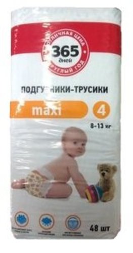ГлавнаяДля детейПодгузникиПодгузники-трусики макси 4 (8-13 кг), 48 шт ТМ 365 дней Подгузники-трусики макси 4 (8-13 кг), 48 шт ТМ 365 дней