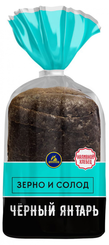 Хлебец Черный янтарь содержит ячменную солодовую муку. Приготовлен на закваске, при этом не имеет характерной кислинки заквасочных хлебов. Имеет насыщенный ячменно-солодовый аромат и карамельный цвет мякиша. Без Е-ингредиентов.