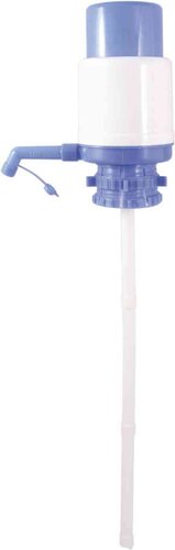 Размер помпы 19×10 см. Подходит к 19 литровым бутылям. Комплектация: заборная трубка в 3 колена (длина 45 см), гофра с металлической пружиной, носик с заглушкой.