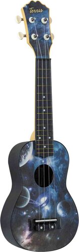 Укулеле Terris Plus 70 Space - модель с потрясающим рисунком. Планеты, туманности, звезды, другие миры - невероятная укулеле с прекрасным звучанием. Укулеле прекрасно подойдет как для обучения музыке, так и в качестве второго инструмента, который можно брать с собой на природу, путешествия, фестивали. Задняя дека, гриф, накладка на гриф сделаны из пластика. Корпус имеет особую полукруглую форму, а резонирующая верхняя дека сделана из древесины. Выпуклая задняя дека (подобно гитарам Ovation) отлично резонирует и усиливает звук. А резонирующая верхняя дека из древесины делает звучание более выразительным и мощным, по сравнению с полностью пластиковыми инструментами. Размер - soprano (сопрано). Верхняя дека - липа. Корпус - пластик. Гриф - пластик. Накладка на гриф - пластик.