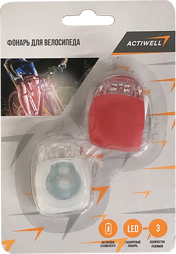Силиконовые фонари Actiwell идут в комплекте по 2 штуки. Их удобно крепить на велосипед. Благодаря силиконовому покрытию можно не бояться, что они упадут и разобьются.