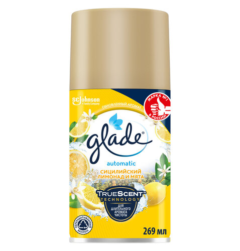 ГлавнаяБытовая химияОсвежители воздухаОсвежитель воздуха Glade Automatic Сицилийский лимонад и мята сменный аэрозольный баллон, 269 мл Освежитель воздуха Glade Automatic Сицилийский лимонад и мята сменный аэрозольный баллон, 269 мл