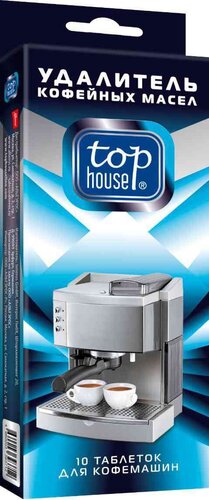 Таблетки TOP HOUSE для очистки кофемашин, кофейных автоматов и кофеварок, 10 шт. x 2 г. предназначены для эффективного и безопасного удаления кофейных масел, жира и кофейного осадка с варочной группы, капельного фильтра и других внутренних деталей. Устраняет посторонние запахи, удаляет жиры и другие загрязнения, предохраняют кофемашину от перегрева.