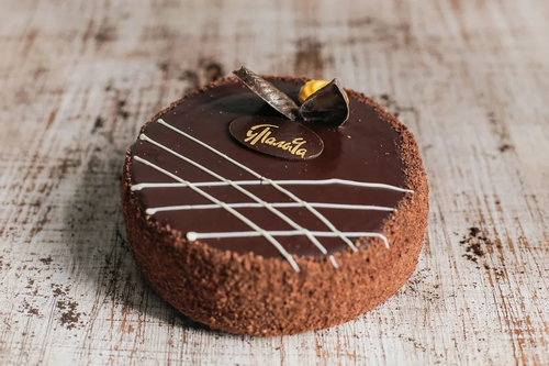 Шоколадно-сливочный крем, шоколадный бисквит, пропитанный ликером. Эквадорский какао придает торту густой шоколадный аромат.