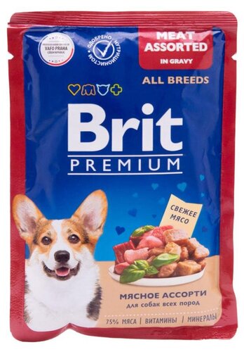ГлавнаяДля животныхКорм для собакВлажный корм для собак Brit мясное ассорти в соусе Влажный корм для собак Brit мясное ассорти в соусе