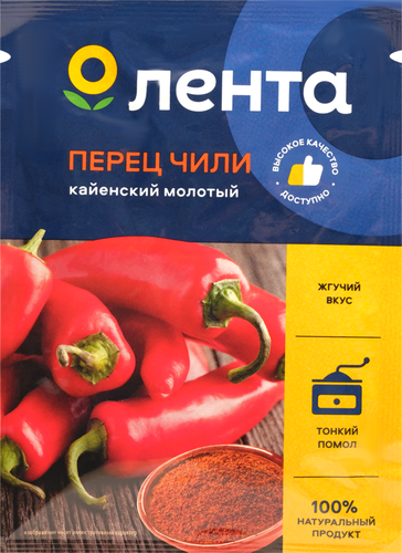 Перец чили кайенский лента молотый изготовлен из тщательно измельченных спелых плодов. Он отличается ярким, выразительным и жгучим вкусом, который позволяет придать более насыщенные дегустационные качества мясу, птице, рыбе, овощам, супам, яйцам, маринадам и другим кулинарным блюдам.