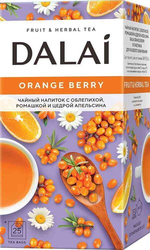 Cолнечный и яркий напиток порадует насыщенным фруктово-ягодным вкусом и ароматом. Сочетание с нежной ромашкой и яркой кислинкой апельсина создает многогранность во вкусе напитка. Сочный, бодрящий и искристый вкус dalai orange berry для вкусной заботы о себе и удовольствия! Не содержит кофеин и станет прекрасным напитком для любого времени суток.