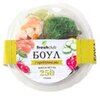 Рис (крупа рисовая, масло подсолнечное, сахар, уксус рисовый (сахарный сироп, вода, уксус рисовый, рисовый экстракт), соль, комплексная пищевая добавка константа микс (вода, модифицированные целлюлозные волокна, регуляторы кислотности: е260 и е330, антиокислитель е300, соль йодированная), салат айсберг, креветки (креветки королевские очищенные варено-мороженые, с хвостом, без пищевода, соус терияки (вода, сахар, соус соевый (вода, соя, пшеница, соль, консервант е211), загустители (е1422, е415).