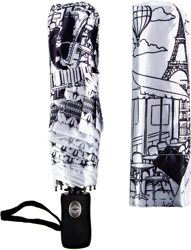 Зонт женский Raindrops автомат надежно защитит от осадков в ненастную погоду. Модель с куполом из прочного износостойкого материала хорошо отталкивает влагу и быстро высыхает. Спицы не выгибаются и не ломаются даже при сильных порывах ветра. В комплект с зонтом входит чехол.
