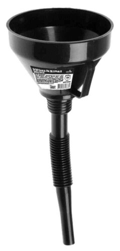 Высокие борта предотвращают разбрызгивание. Длинный тонкий носик позволяет заливать жидкости в емкости с узкой горловиной. Носик воронки подходит на канистры. Изготовлена из материалов устойчивых к воздействию агрессивных жидкостей.