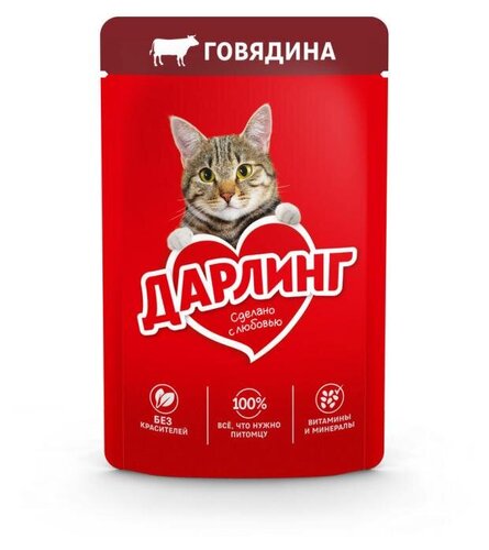 ГлавнаяДля животныхКорм для кошекКорм влажный для кошек Дарлинг с говядиной в подливе Корм влажный для кошек Дарлинг с говядиной в подливе