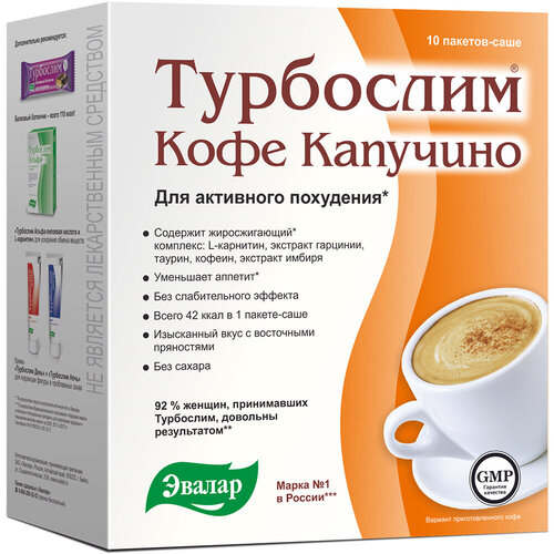 ГлавнаяАптекаВитамины и БАДТурбослим Кофе Капучино пакетики 9.5г №10 Турбослим Кофе Капучино пакетики 9.5г №10