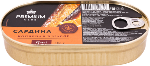 ГлавнаяКонсервыРыбные консервыСардина PREMIUM CLUB копченая в масле Сардина PREMIUM CLUB копченая в масле