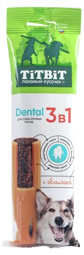 Dental 3в1 - профилактическое лакомство для комплексного ухода за зубами и деснами собак. Благодаря комбинированной текстуре и полезным добавкам использование снека позволит поддерживать здоровье ротовой полости животного в отличном состоянии: 1 - внешний гладкий слой - обеспечивает массаж и укрепление десен; 2 - внутренний пористый слой - предотвращает образование налета; 3 - облепиха - способствует защите от бактерий.
