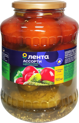 ГлавнаяКонсервыОвощи и грибыАссорти Лента огурцы и томаты маринованные Ассорти Лента огурцы и томаты маринованные