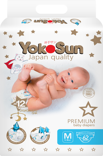 Подгузники yokosun premium m 5–10кг – это новая линейка полюбившихся многим родителям подгузников yokosun. Они отвечают всем требованиям современных мам и дарят до 12 часов спокойного сна. В изготовлении подгузников yokosun используется новый японский абсорбент, который еще быстрее впитывает и удерживает влагу, поддерживая сухость в течение длительного времени и защищая кожу малыша от покраснений. Анатомическая форма и мягкая поверхность подгузника обеспечивают комфортное прилегание.