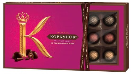 ГлавнаяСладкоеКонфеты в коробкахКонфеты темный шоколад с цельным фундуком, дробленой вафлей, светлой и темной ореховой начинкой ТМ А. Коркунов Конфеты темный шоколад с цельным фундуком, дробленой вафлей, светлой и темной ореховой начинкой ТМ А. Коркунов
