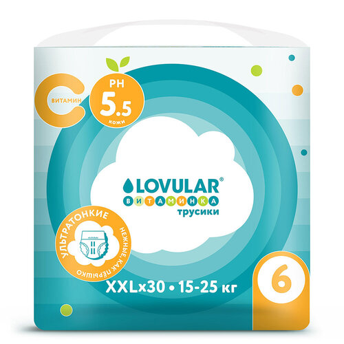ГлавнаяДля детейПодгузникиТрусики-подгузники Lovular Витаминка XXL 15-25 кг, 30 шт Трусики-подгузники Lovular Витаминка XXL 15-25 кг, 30 шт
