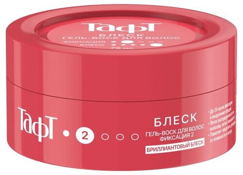 Гель-воск для укладки волос TAFT Бриллиантовый Блеск Фиксация. Эффект ламинирования - до 100% больше блеска, как сияние бриллиантов. До 24 часов сильной фиксации и выделение прядей. Легко распределяется по волосам, легко смывается. Помогает защитить укладку от влажности и ветра.