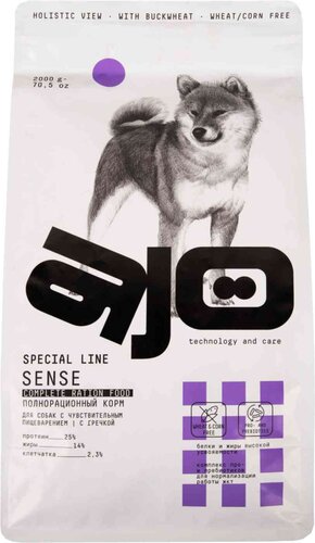 Ajo Dog Sense Сухой полнорационный корм с гречкой для собак с чувствительным пищеварением.