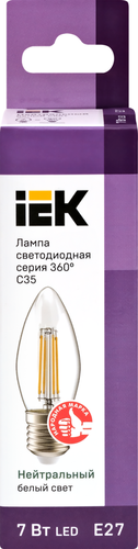 Лампа LED C35 свеча 7Вт 230В 4000К E27 серия 360 от бренда IEK с нитевидным светодиодом (филаментная нить) является одним из самых эффективных источников света. Главное отличие от обычных светодиодных ламп – угол рассеивания света до 360 градусов (дополнительный комфорт для глаз). Лампа применяется в осветительных приборах бытового назначения. Представлены в 3 вариантах: с прозрачной, золоченой и матовой колбами.