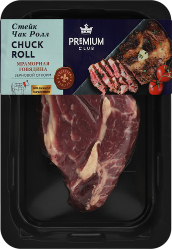 Стейк из говядины Чак ай ролл от торговой марки PREMIUM CLUB – сочное мясо, которое можно приготовить на гриле, сковороде или запечь в духовом шкафу. Продукт великолепно сочетается со всевозможными гарнирами, салатами и соусами. Аппетитная говядина станет отличным вариантом для приготовления семейного ужина и угощения гостей.